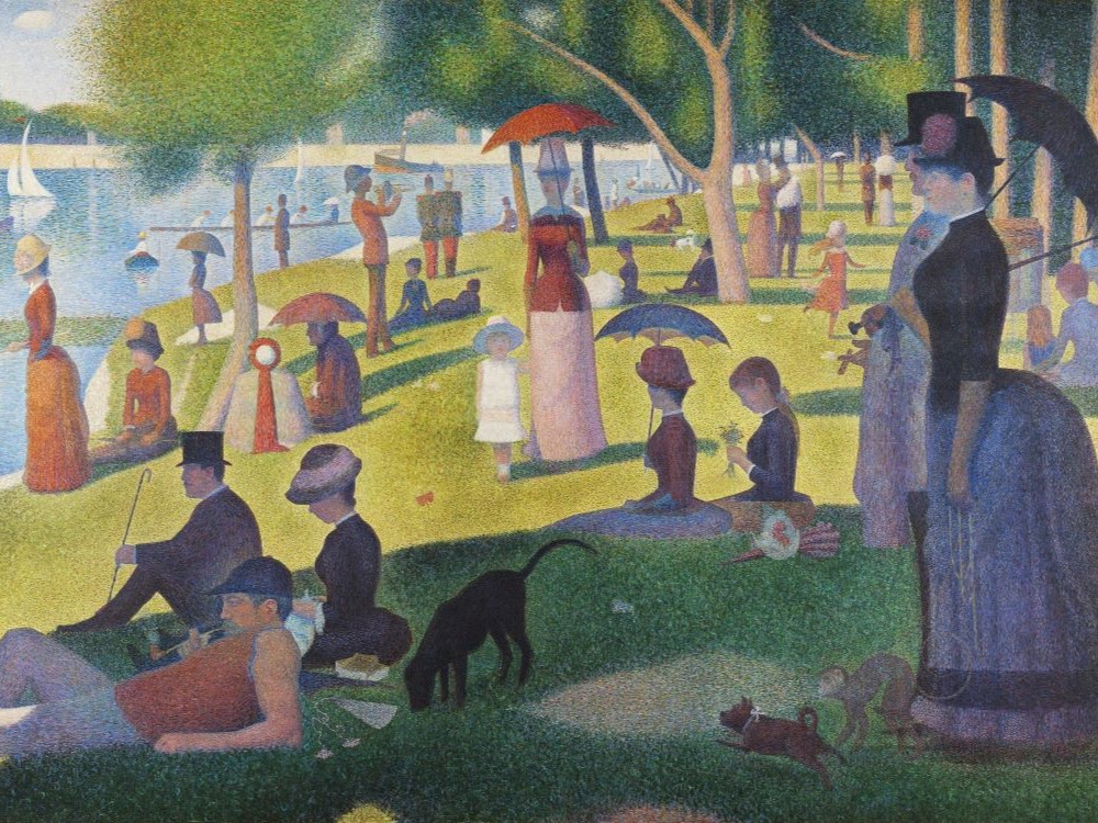 The museum is most famous for its collections of Impressionist and Post-Impressionist paintings, widely regarded as one of the finest collections outside of France. Highlights include more than 30 paintings by Claude Monet, including six of his Haystacks and a number of Water Lilies. Also in the collection are important works by Pierre-Auguste Renoir such as Two Sisters (On the Terrace), and Gustave Caillebotte's Paris Street; Rainy Day. Post-Impressionist works include Paul Cézanne's The Basket of Apples, and Madame Cézanne in a Yellow Chair. At the Moulin Rouge by Henri de Toulouse-Lautrec is another highlight. The pointillist masterpiece, which also inspired a musical and was famously featured in Ferris Bueller's Day Off, Georges Seurat's Sunday Afternoon on La Grande Jatte—1884, is prominently displayed. Additionally, Henri Matisse's Bathers by a River, is an important example of his work. Highlights of non-French paintings of the Impressionist and Post-Impressionist collection include Vincent van Gogh's Bedroom in Arles and Self-portrait, 1887.