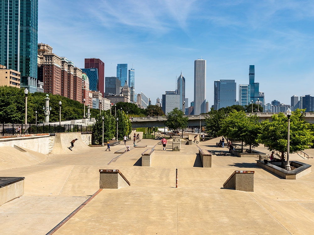 The Grant Park Skate Plaza, designed by Chicago Landscape Architects Altamanu, was opened on December 6, 2014. The Plaza was initiated by Grant Park Conservancy President, Robert O’Neill. The new park occupies 3 acres (12,000 m2) and has replaced the former skate area near the tennis courts. The Conservancy sought planning support from local skateboarders and BMX bikers who formed the Grant Park Conservancy & Advisory Council Skate Committee. The Plaza is located in the southwest corner of the park near the former site of the 1893 Central Station and includes limestone pieces from the former railroad terminal.