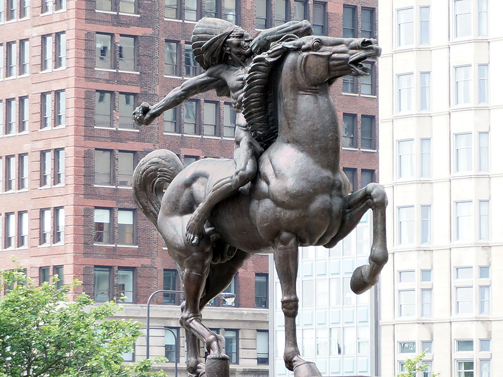 Congress Plaza is a ceremonial entrance located on the park's western edge, at the Ida B. Wells Drive and Michigan Avenue intersection. Two semicircular plazas flanking Ida B. Wells Drive contain gardens, fountains, and artwork, including a pair of large bronze warrior statues, The Bowman and The Spearman that are positioned like gatekeepers to the park.