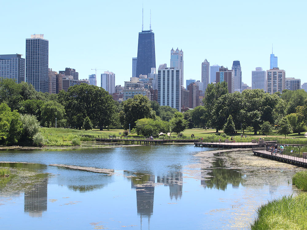 The park also features several harbors with boating facilities, as well as public beaches for swimming. There are landscaped gardens, public art, bird refuges, a zoo, the Lincoln Park Conservatory, the Chicago History Museum, the Peggy Notebaert Nature Museum, the Alfred Caldwell Lily Pool, and a theater on the lake with regular outdoor performances held during the summer.