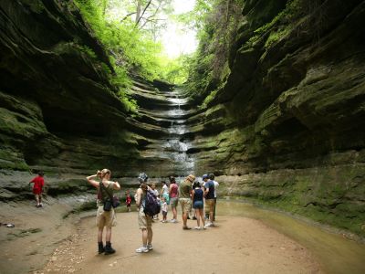 The Starved Rock State Park is a natural sanctuary nestled along the Illinois River, known for its dramatic sandstone canyons, seasonal waterfalls, and panoramic overlooks. With over 13 miles of trails winding through 18 distinct canyons, the park offers a dynamic landscape that changes with the seasons—from spring’s rushing waterfalls to autumn’s vibrant foliage. Visitors can explore iconic sites like LaSalle and St. Louis Canyons, or ascend to Starved Rock itself for sweeping views of the river valley below.