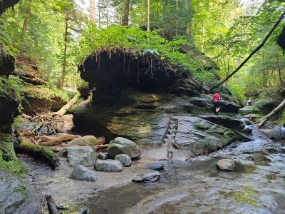 Scenic natural preserve featuring rugged sandstone gorges, deep ravines, and forested trails ideal for hiking, wildlife viewing, and outdoor recreation.