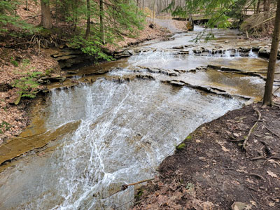 Brandywine Village was conceived and founded by George Wallace, who built a sawmill next to Brandywine Falls in 1814. He encouraged others to move to the area, including his brother-in-law, who built a grist mill on the opposite side of the falls. With inexpensive land available and the presence of mills to provide lumber, flour, and corn meal, Brandywine Village began to grow. A couple of buildings remain from the village, and historic photos and remnants of building foundations can also be seen.