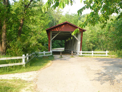 The Everett Covered Bridge—the only covered bridge in Summit County—was constructed after a local resident was killed attempting to cross the swollen Furnace Run in 1877. The bridge was destroyed by storm floodwaters in 1975 and reconstructed by the National Park Service in 1986. The bridge is located on Everett Road about 1/2 mile (800 m) west of Riverview Road near Everett Village.
