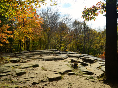 The natural areas include forests, rolling hills, narrow ravines, wetlands, rivers, and waterfalls. About 100 waterfalls are located in the Cuyahoga Valley, with the most popular being the 65-foot (20 m) tall Brandywine Falls—the tallest waterfall in the park and the tallest in Northeast Ohio. The Ledges are a rock outcropping that provides a westward view across the valley's wooded areas. Talus caves are located among the boulders in the forest around the Ledges.