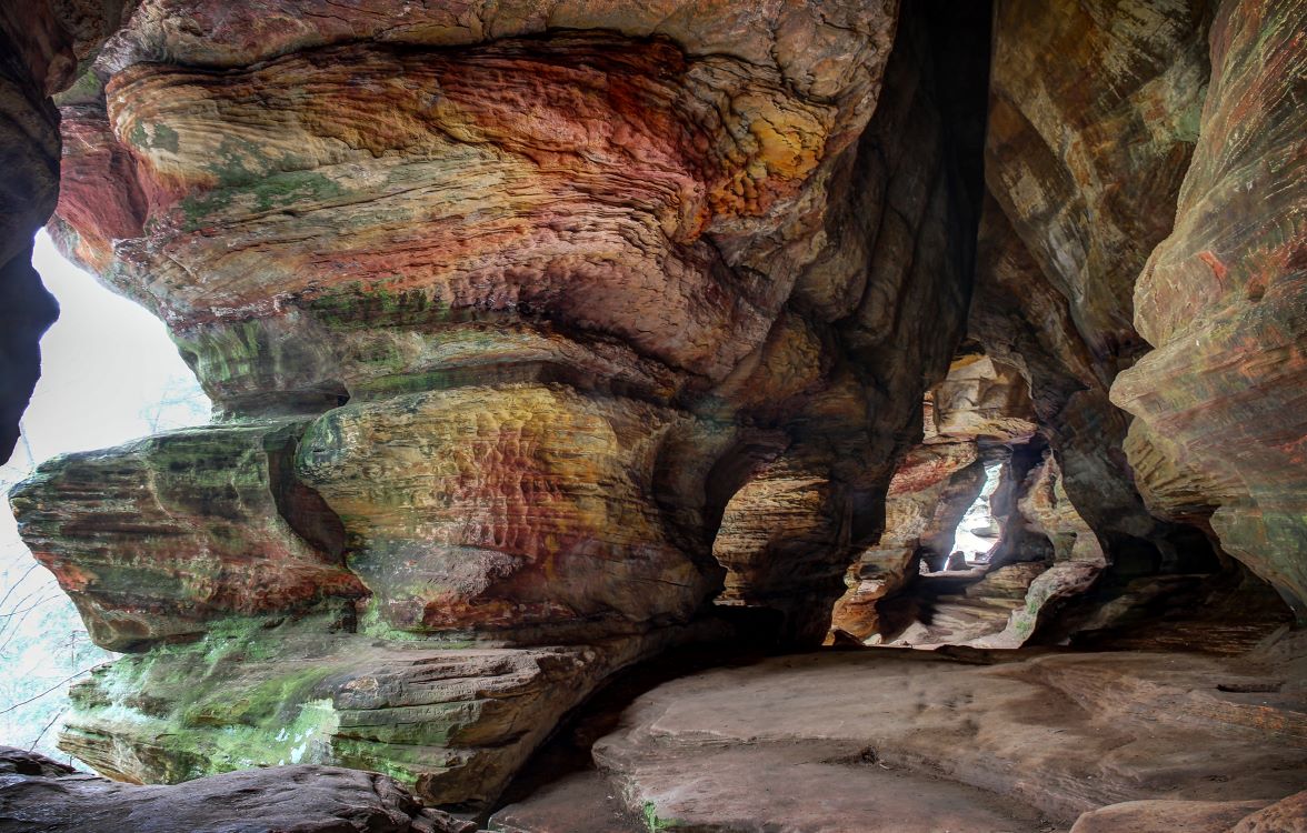 The Hocking Hills State Park is a geological wonderland in southeastern Ohio, renowned for its dramatic sandstone cliffs, cascading waterfalls, and lush hemlock forests. The park encompasses several distinct areas, including Old Man’s Cave, Ash Cave, Cedar Falls, and Rock House, each offering unique natural features shaped by millions of years of erosion. Visitors can explore over 25 miles of hiking trails, many of which are one-way loops designed to protect the fragile ecosystem and ensure safety along narrow cliffside paths. The park also features a modern visitor center, picnic areas, and accessible trails at Ash Cave and Conkle’s Hollow.