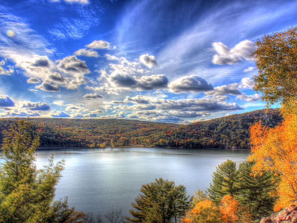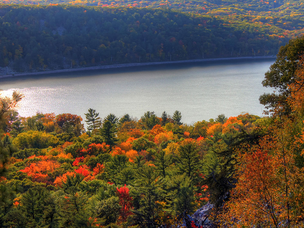 State park is known for its 500-foot-high quartzite bluffs along the 360-acre Devil's Lake