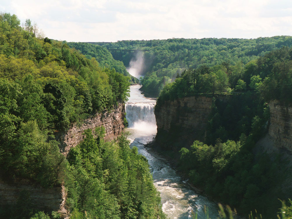 State park located in the northwestern part of New York roughly 17 miles long, following the course of the Genesee River as it flows north through a deep gorge and over several large waterfalls