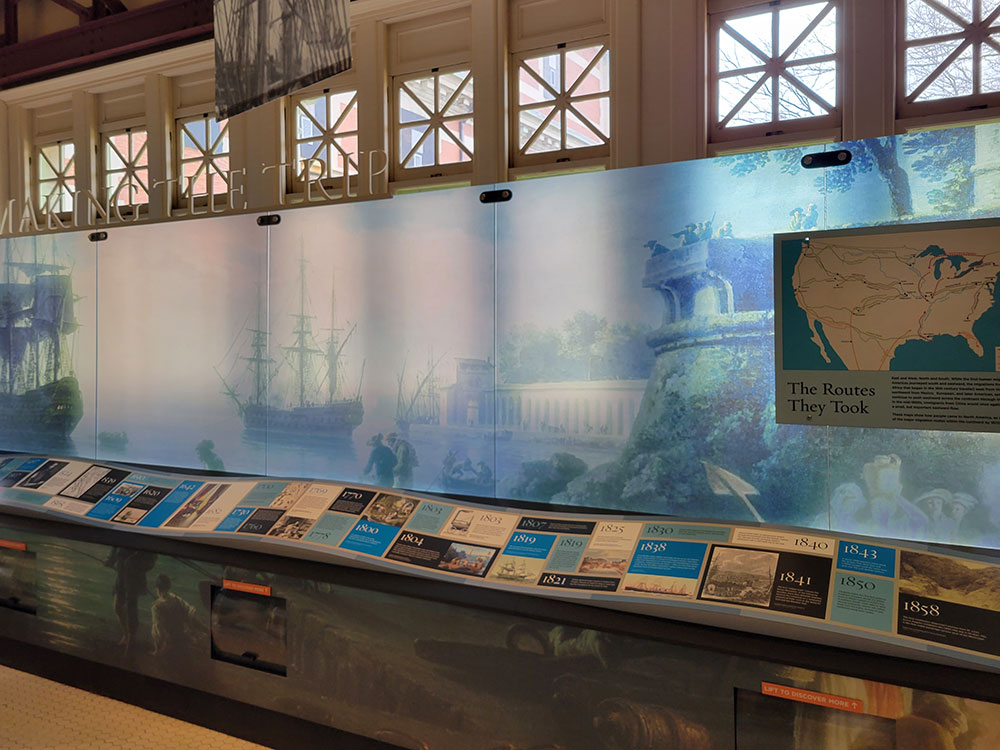 The Wall of Honor outside of the main building contains a list of 775,000 names inscribed on 770 panels, including slaves, Native Americans, and immigrants that were not processed on the island. The Wall of Honor originated in the late 1980s as a means to pay for Ellis Island's renovation, and initially included 75,000 names. The wall originally opened in 1990 and consisted of copper panels.