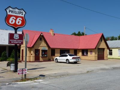 Restored 1930s service station transformed into a nostalgic stop featuring Route 66 memorabilia and local history exhibits.