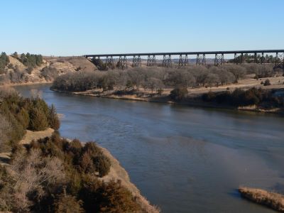 From Valentine, NE (0 mi): The trailhead is located within the city; access the Cowboy Trail from the east side of town near the historic railroad bridge.