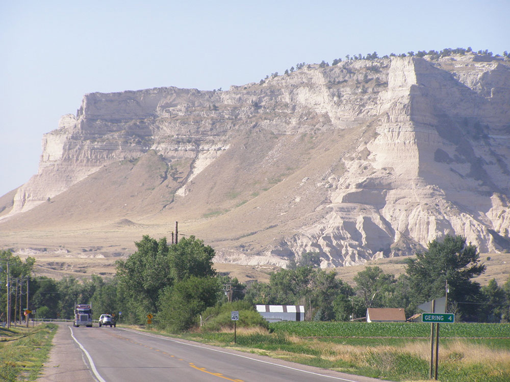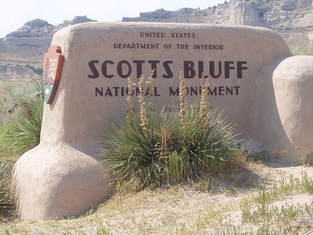 Scotts Bluff National Monument is located west of the City of Gering in western Nebraska. This National Park Service site protects over 3,000 acres of historic overland trail remnants, mixed-grass prairie, rugged badlands, towering bluffs and riparian area along the North Platte River.