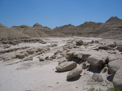 The trailhead at the campground provides access to three hiking trails with varying degrees of difficulty. A one mile loop highlights many examples of eroded clay/sandstone formations.