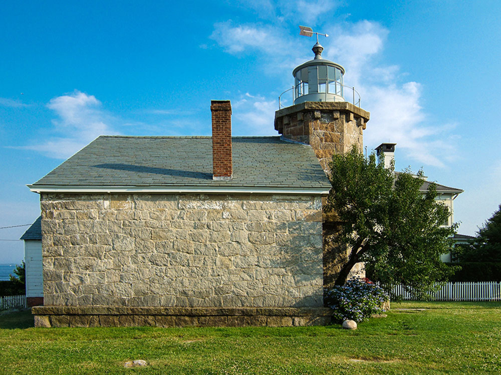 The Stonington Harbor Light is a historic lighthouse built in 1840 and located on the east side of Stonington Harbor in Stonington, Connecticut. It is a well-preserved example of a mid-19th century stone lighthouse. The light was taken out of service in 1889 and now serves as a local history museum. It was listed on the National Register of Historic Places in 1976.
