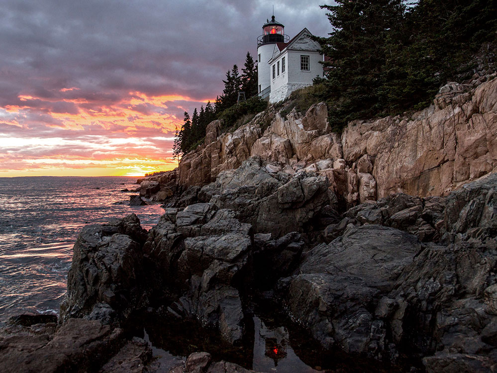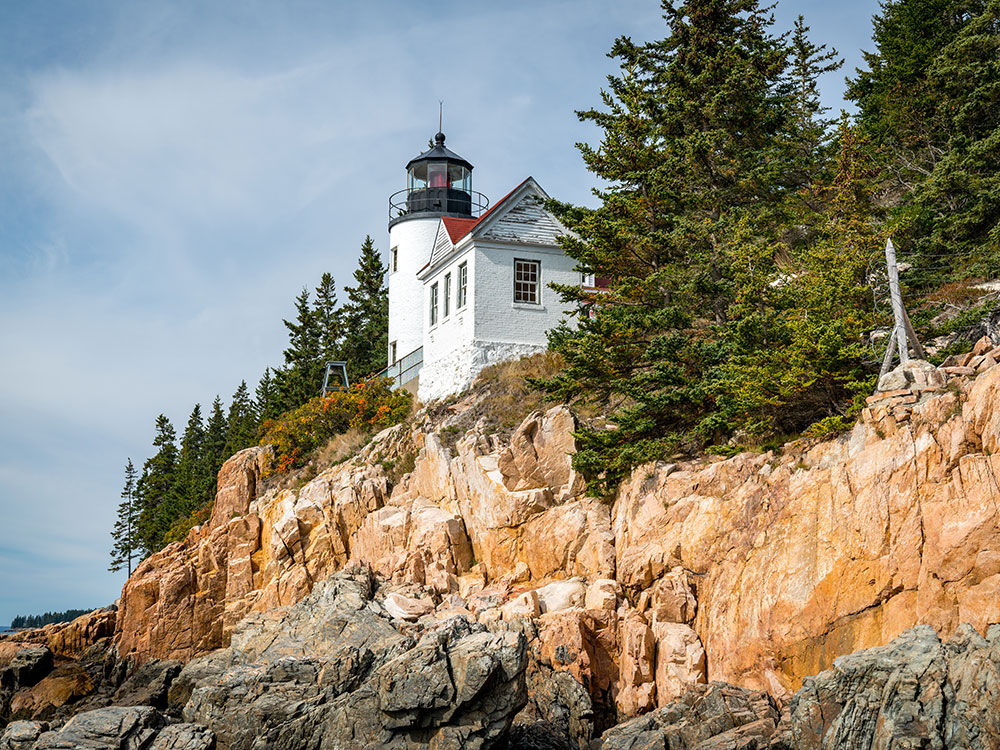 Lighthouse located within Acadia National Park in the southwest portion of Mount Desert Island, marking the entrance to Bass Harbor and Blue Hill Bay