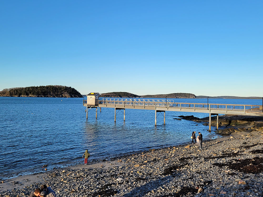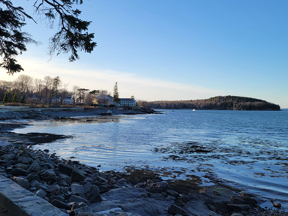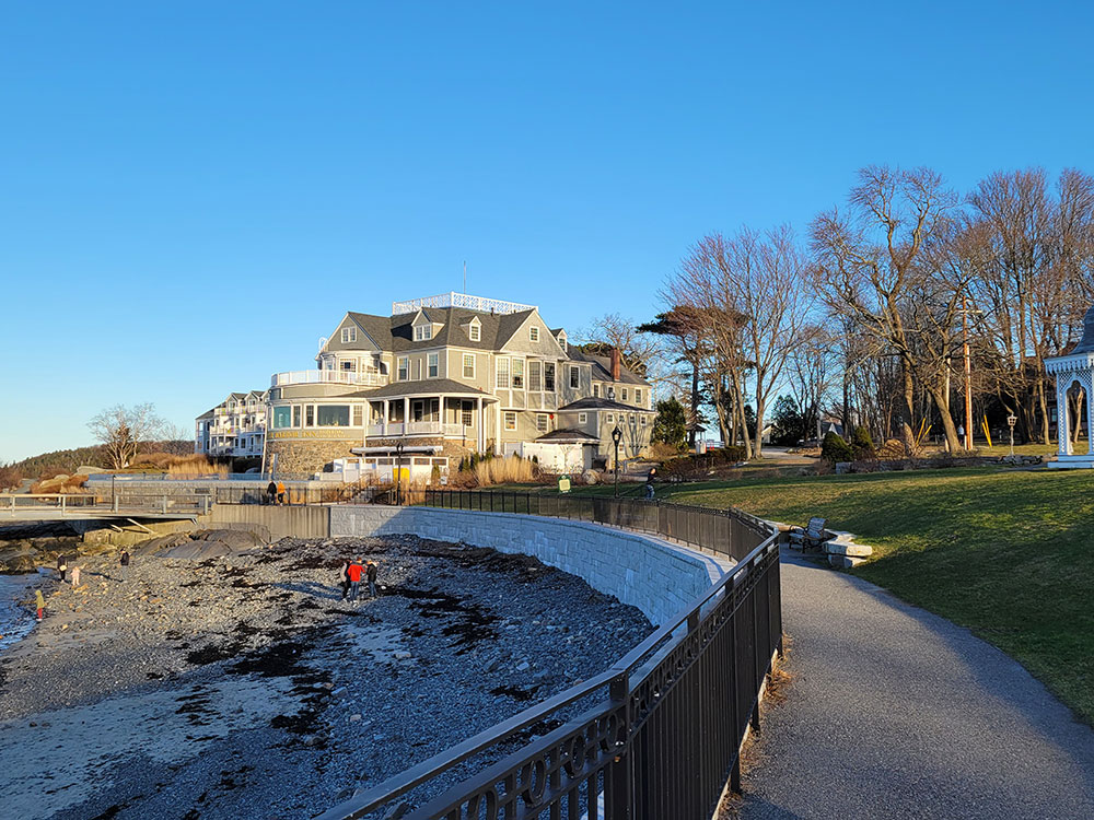 From the town pier, the path runs east initially, then south after it passes the lawn of the Bar Harbor Inn and Uncle Steve's Point. Grant Park is next, just north of the Balance Rock Inn. An exit, leading to Main Street's village green via Albert Meadow, is here. Continuing, past the Tudor Revival-style John Innes Kane Cottage (built in 1904), another (less obvious) exit to Main Street, via Hancock Street, appears. The southern end of the path is marked with a turn leading to Wayman Lane.