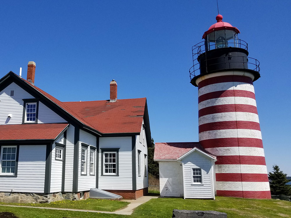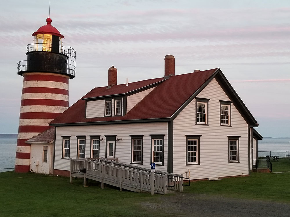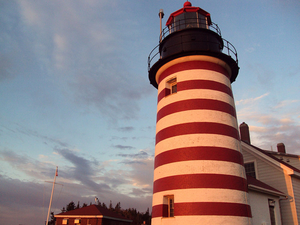 In 1808, West Quoddy Head Light became the easternmost lighthouse in the United States. Its light and fog cannon warned mariners of Quoddy's dangerous cliffs, ledges, and Sail Rock. Among the first to use a fog bell and later a steam-powered foghorn, this lighthouse greatly reduced shipwrecks in this foggy area, even as shipping increased. In 1858, the present red-and-white tower replaced the original. Monitored and serviced by the United States Coast Guard, its light still shines through its original third-order Fresnel lens. After automation in 1988, the light station became part of adjacent Quoddy Head State Park. The tower is closed, but visitors are welcome to enjoy the lighthouse grounds and explore the visitor center and museum run by the West Quoddy Head Light Keepers Association.