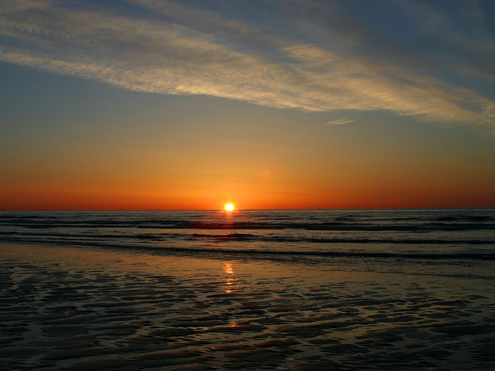 Resort town with a three and a half-mile beach of pale sand and dunes