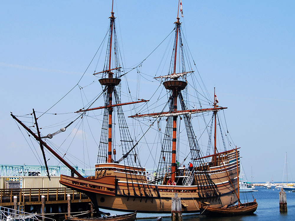 Replica of the 17th-century ship Mayflower, celebrated for transporting the Pilgrims to the New World in 1620