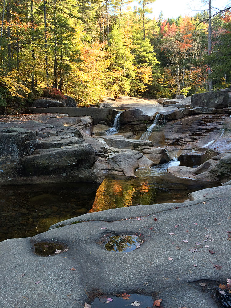 Series of small waterfalls located in the White Mountains of New Hampshire