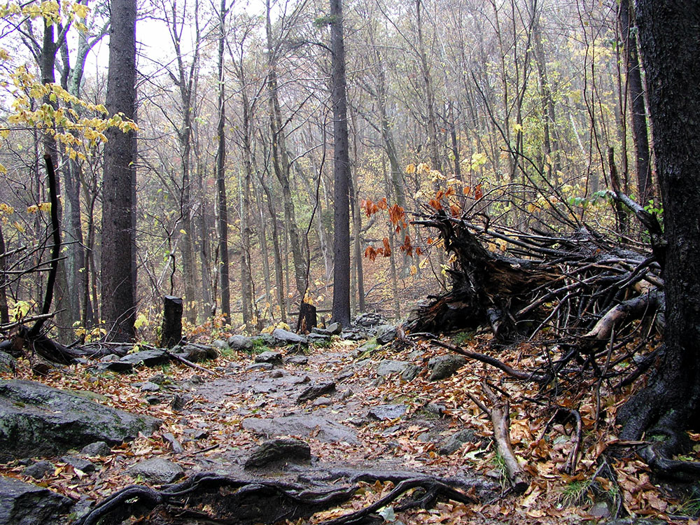 Other important trails include the White Cross Trail, an alternative parallel to the White Dot Trail, and the Cliff Walk, a scenic detour that shadows a ledge to the east of the White Arrow Trail.