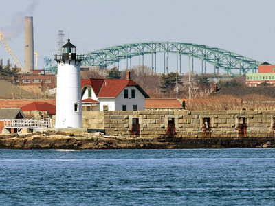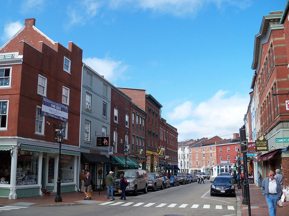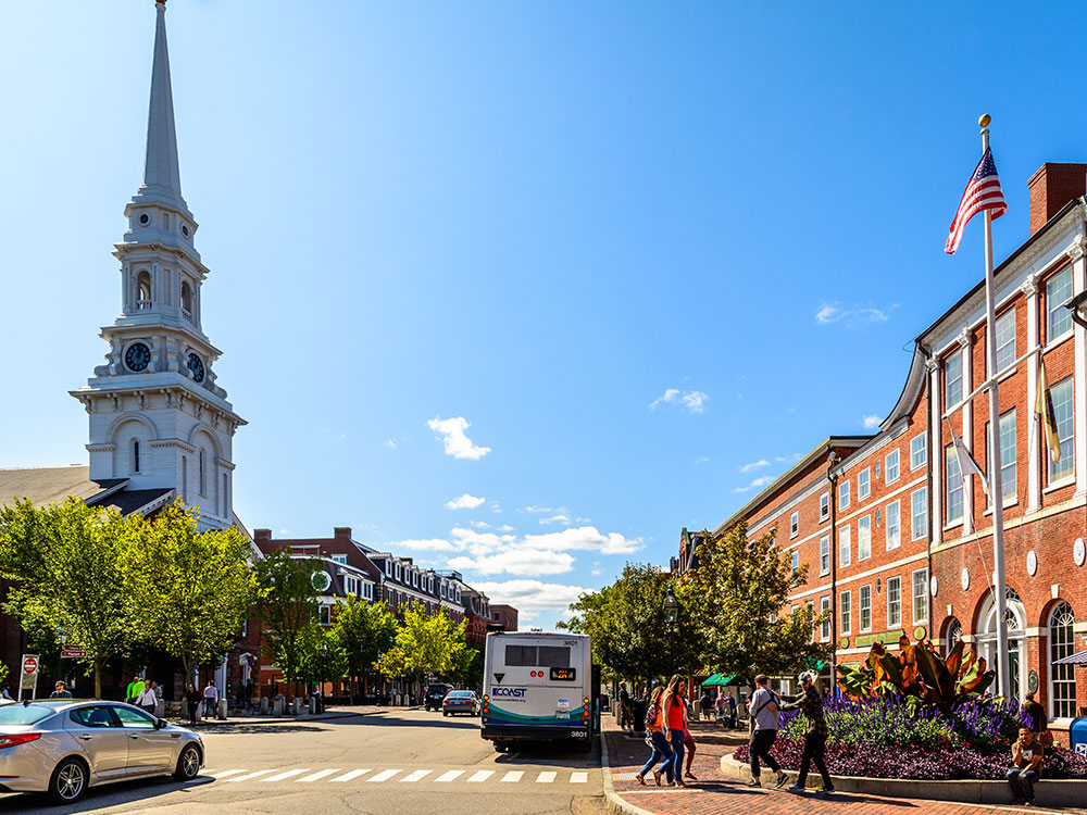 Historic seaport and popular summer tourist destination on the Piscataqua River bordering the state of Maine
