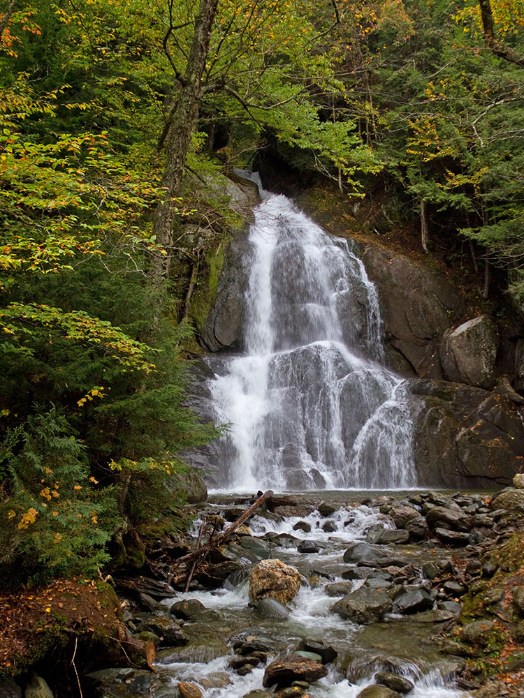 An 80-acre section in Stowe is designated as the Moss Glen Falls Natural Area (Stowe) and features one of the highest waterfalls in the state, with a total drop of over 100 feet.