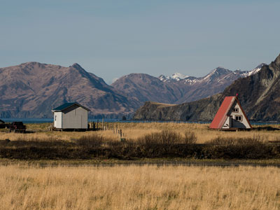Volcanic island in the Aleutian Islands in Alaska with the city of Unalaska, Alaska, covering part of the island and all of neighboring Amaknak Island where the Port of Dutch Harbor is located