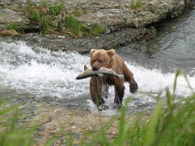 River on the eastern drainage of the Alaska Peninsula, famous for its salmon and brown bears