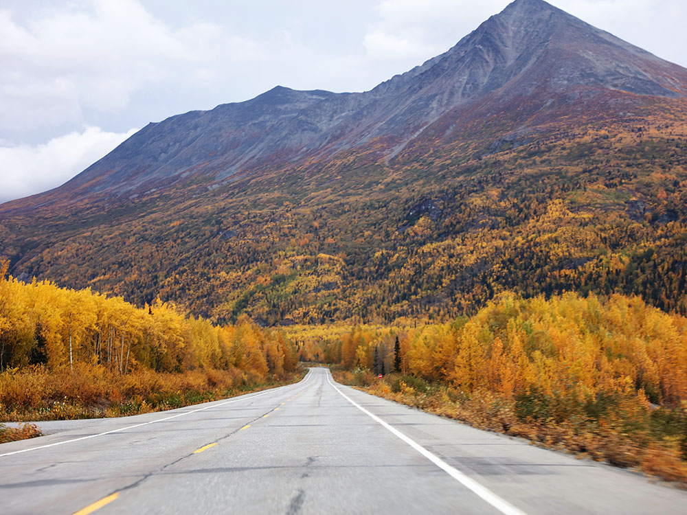 The Trans-Alaska Pipeline System, built in 1973-1977, mostly parallels the highway from Fairbanks to Valdez.