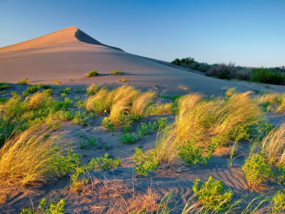 Desert park featuring North America's tallest single-structured sand dune, stargazing observatory, sandboarding, and spring-fed lakes for fishing and kayaking.