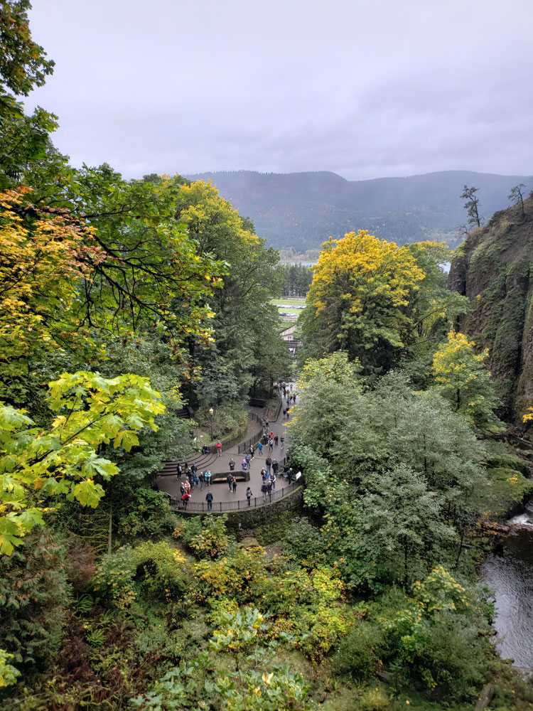 There are a number of trail junctions along the footpaths ascending to the falls' observation deck, which allow access to a 5.4 miles (8.7 km) trail loop to other nearby waterfalls. The Mark O. Hatfield Memorial Trail, one of several, starts at the falls and continues through the Oregon side of the Columbia River Gorge to Starvation Creek.