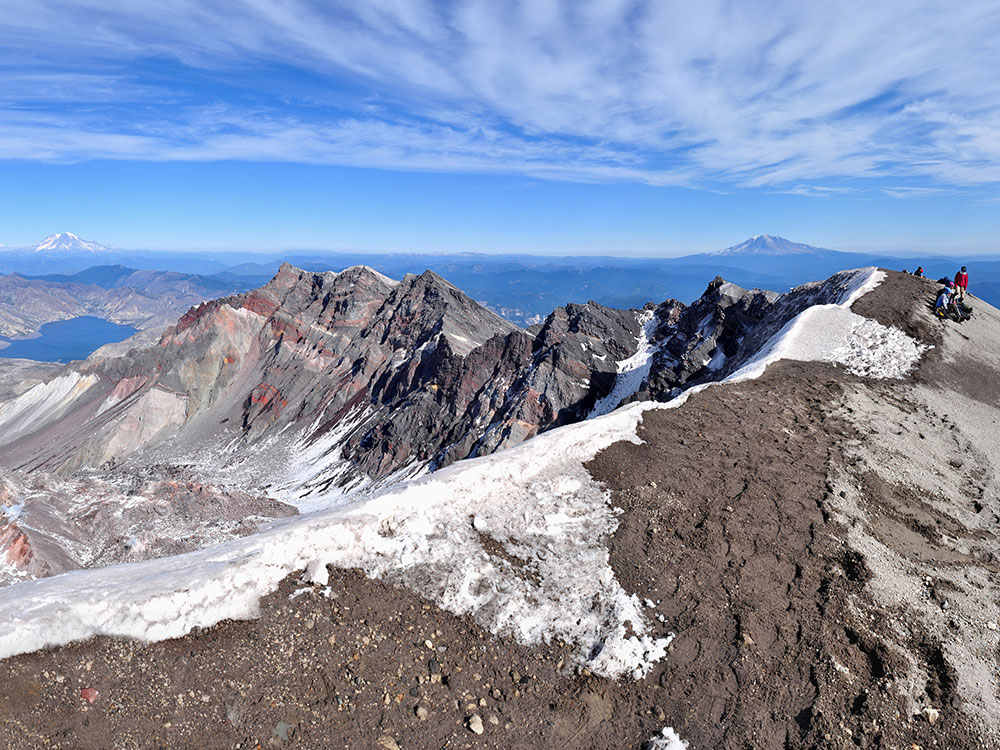8.2 miles round-trip, 4583 feet elevation Standard hiking/mountaineering route in the warmer months to Mount St Helens crater. Considered a non-technical climb that involves some scrambling.