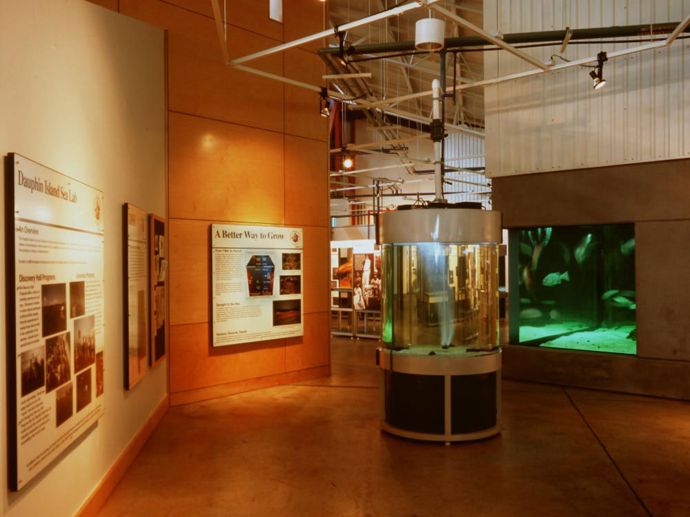 The George F. Crozier Estuarium is part of the Discovery Hall educational program at the Dauphin Island Sea Lab. It includes a 10,000 square foot Exhibit Hall and a Living Marsh Boardwalk. The Exhibit Hall features four exhibits highlighting aquatic life that could be found in the Mobile-Tensaw River Delta, Mobile Bay, the Barrier Islands and the Northern Gulf of Mexico.