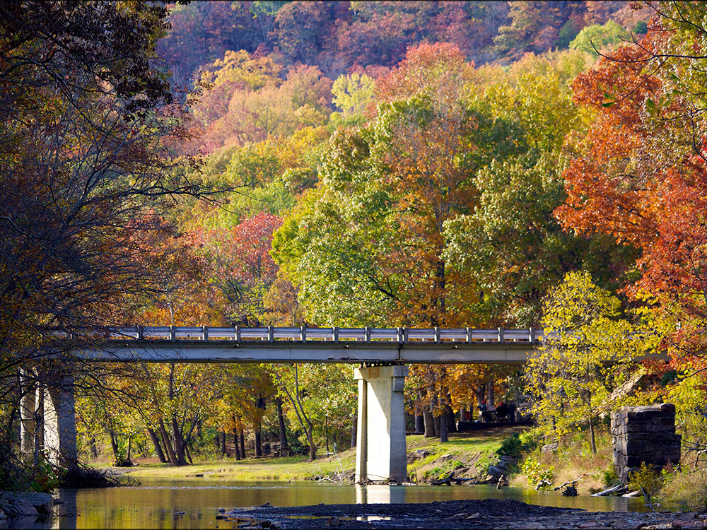 Cross Country Mountain Bike Trail is 15 miles (24 km) long. It features creek crossings, dirt roads, single track riding and long uphills and downhills. It is divided into three loops and runs outside the park into Ozark National Forest. Riders are required to carry a permit from the park offices to ride the trail.