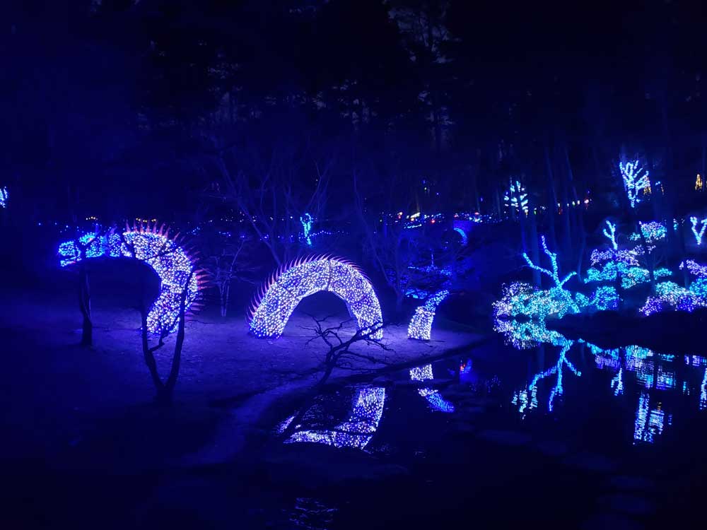 Garvan Woodland Gardens is situated on a woodland peninsula with 4.5 miles (7 km) of shoreline on Lake Hamilton. It features rocky inclines reminiscent of the surrounding Ouachita Mountains, floral landscapes, streams, and waterfalls in a natural woodland setting, plus the fifth-ranked Garden of the Pine Wind Japanese Garden with Japanese maples and tree peonies, a conifer border, and various flower and rock gardens. Its collections display hundreds of rare shrubs and trees, including camellias, magnolias, roses and more than 160 different types of azaleas.