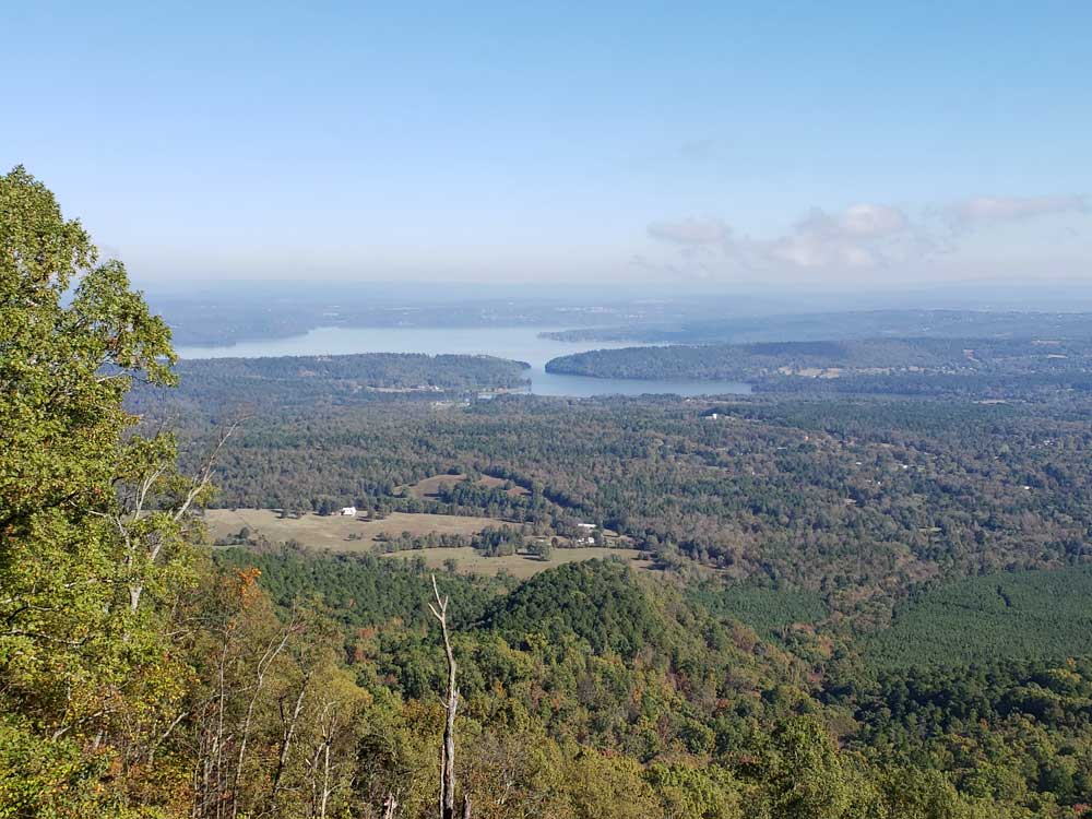 Rising 1,350 feet (410 m) above the mountain valleys of west central Arkansas, with a view of 34,000 acres (140 km2) Lake Dardanelle, the Arkansas River and the surrounding mountain ridges