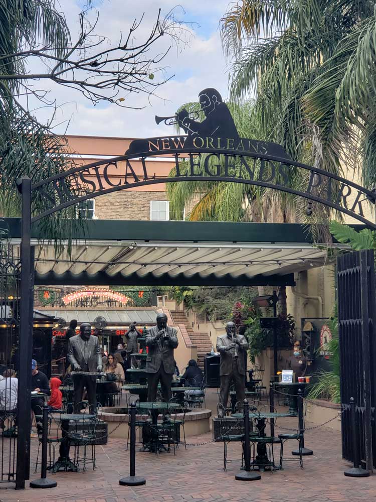 Small park on Bourbon Street features life-size bronze statues of New Orleans musicians