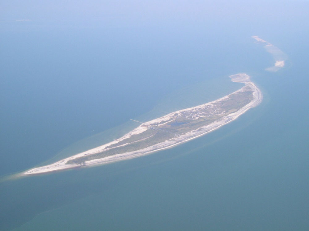 Barrier island off the Gulf Coast of Mississippi and site of Fort Massachusetts (built 1859-66), serves as a tourist destination with activities including fishing, swimming, and tours of Fort Massachusetts
