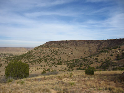 Black Mesa is a mesa in Colorado, New Mexico, and Oklahoma. It extends from Mesa de Maya, Colorado southeasterly 28 miles (45 km) along the north bank of the Cimarron River, crossing the northeast corner of New Mexico to end at the confluence of the Cimarron River and North Carrizo Creek near Kenton in the Oklahoma panhandle. Its highest elevation is 5,705 feet (1,739 m) in Colorado. The highest point of Black Mesa within New Mexico is 5,239 feet (1,597 m). In northwestern Cimarron County, Oklahoma, Black Mesa reaches 4,973 feet (1,516 m), the highest point in the state of Oklahoma. The plateau that formed at the top of the mesa has been known as a "geological wonder" of North America. There is abundant wildlife in this shortgrass prairie environment, including mountain lions, butterflies, and the Texas horned lizard.