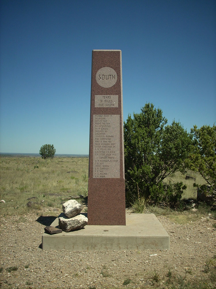 The mesa's highest point within Oklahoma is marked by a granite obelisk, and a visitors' log.