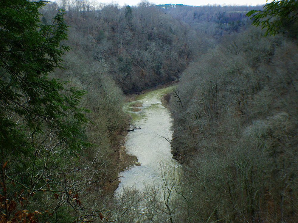 The entrance to Burgess Falls State Park is located just off Tennessee State Route 135 roughly halfway between Cookeville and Sparta.