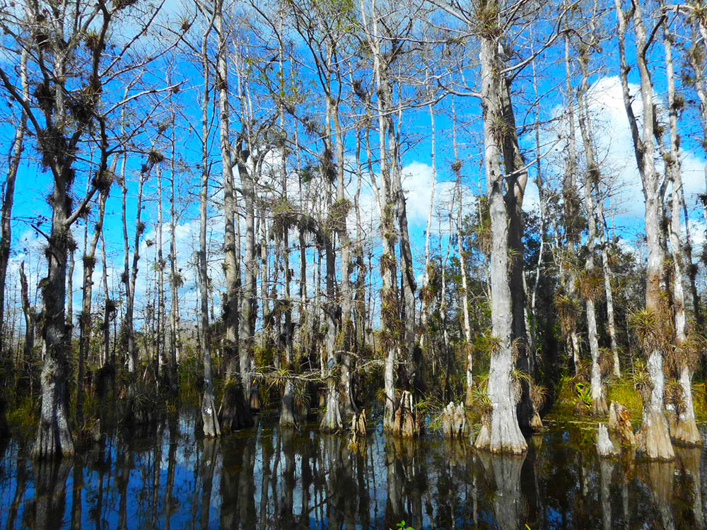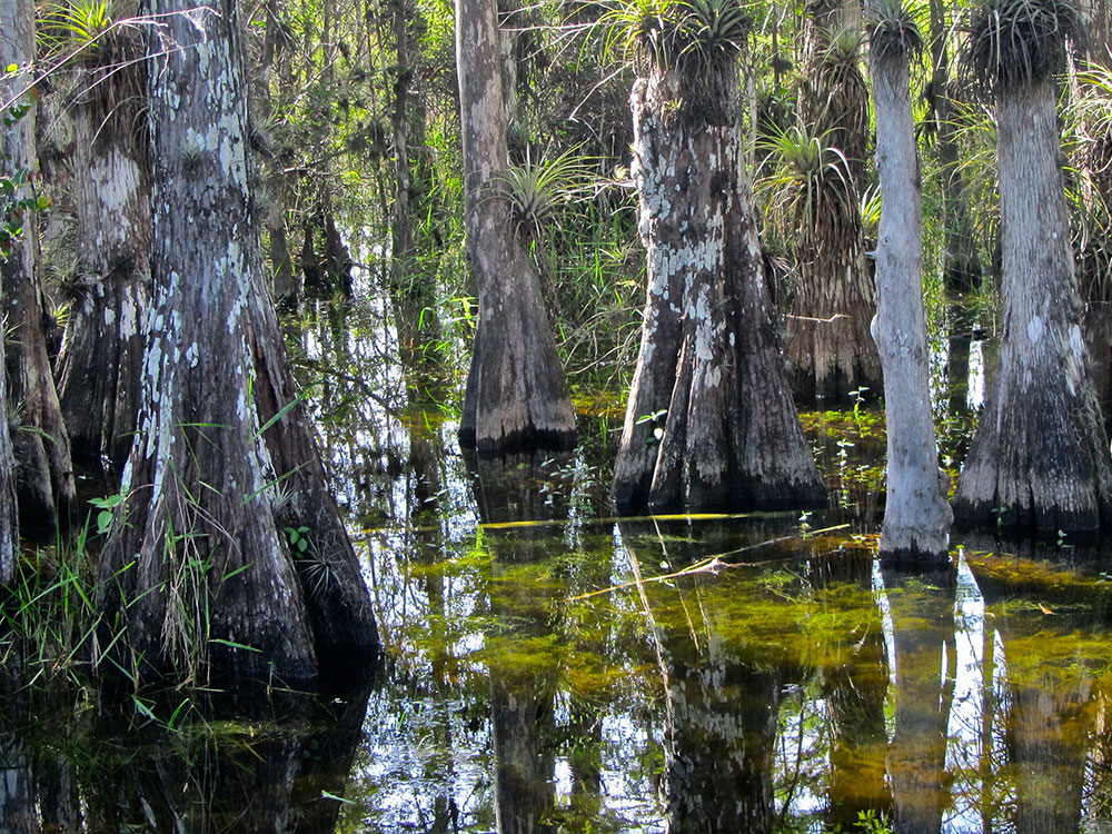 Big Cypress borders the wet freshwater marl prairies of Everglades National Park to the south, and other state and federally protected cypress country in the west, with water from the Big Cypress flowing south and west into the coastal Ten Thousand Islands region of Everglades National Park.