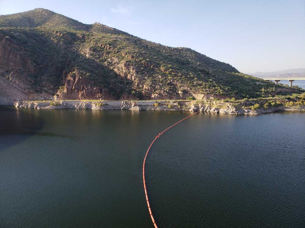 Large reservoir formed by Theodore Roosevelt Dam on the Salt River northeast of Phoenix is the largest lake or reservoir located entirely within the state of Arizona