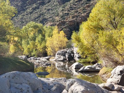 The only major hiking path in the monument, the 0.8 mile route along Badger Springs Canyon, a west-side tributary of the Agua Fria River.