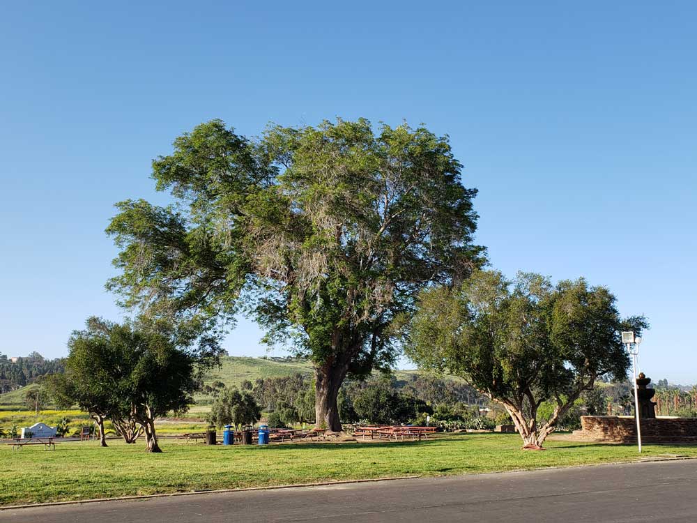 The first Peruvian Pepper Tree (Schinus molle) in California was planted here in 1830, now iconic, widely planted, and renamed the California Pepper tree in the state. After the Mexican secularization act of 1833 much of Mission San Luis Rey de Francia land was sold off. Indigenous peoples, previously forced to work on missions, were freed from direct subjugation in the mission system through this act.