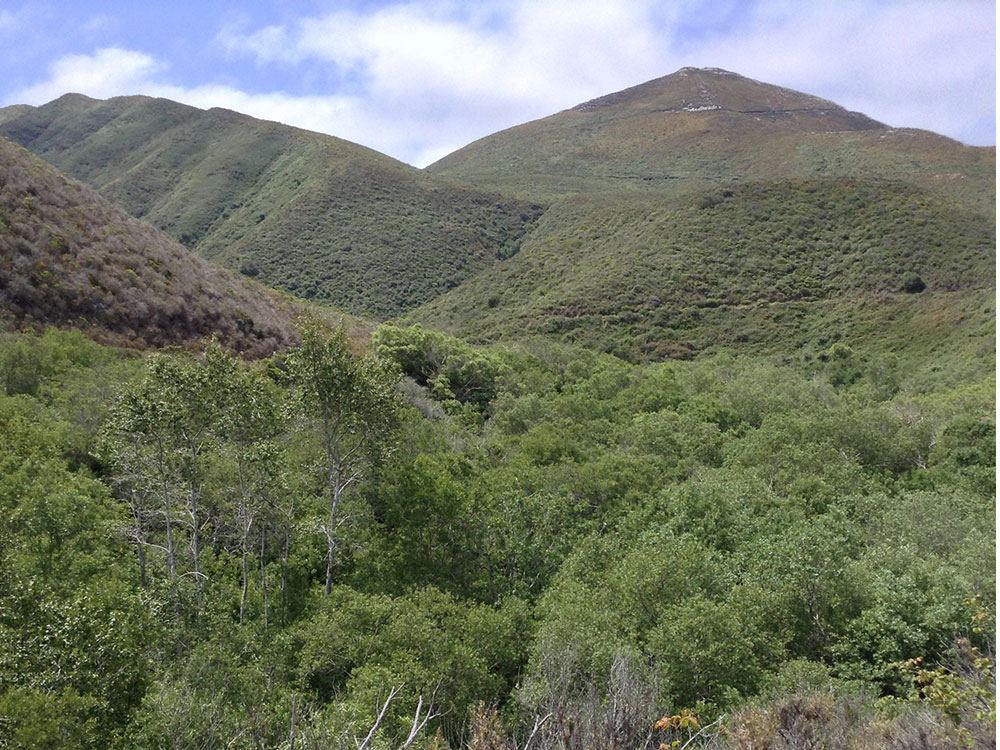 From San Luis Obispo, CA (14 mi): Take Los Osos Valley Road west for approximately 11 miles until it becomes Pecho Valley Road; continue 3.5 miles to the Valencia Peak Trailhead parking area near Spooner Ranch House.