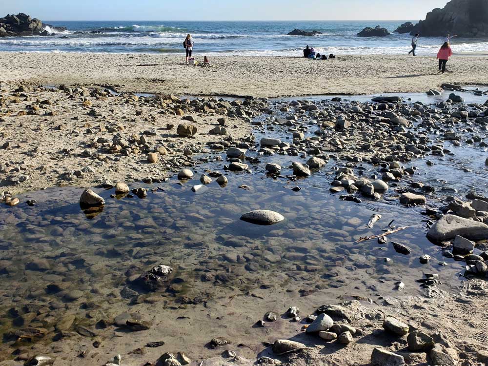 No camping or fires are permitted. There are four picnic tables available. Swimming can be hazardous due to the cold water, rocks, and strong currents. The weather from June to August can be foggy and cold, known locally as "June Gloom".
