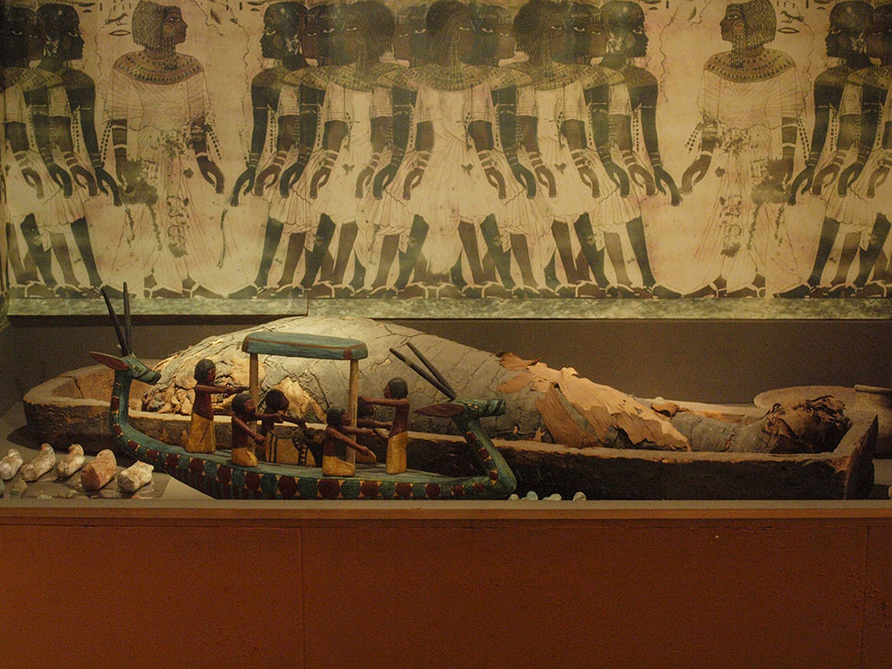 The museum's cultural resources and permanent exhibits focus on the pre-Columbian history of the western Americas, with materials drawn from Native American cultures of the Southern California region, and Mesoamerican civilizations such as the Maya. The museum holds a collection of Ancient Egyptian antiquities, which includes burial masks, figurines, and seven painted wooden coffins. Total holdings include more than 100,000 documented ethnographic items, more than 300,000 archaeological items, and more than 25,000 photographic images.