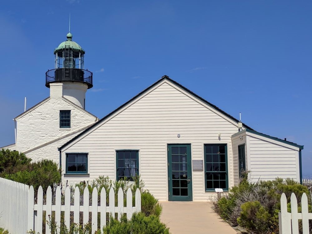 After boarding up the old lighthouse in 1891, the keeper moved his family and belongings into a new light station at the bottom of the hill, which is still an active light. It can be seen from the Whale Overlook, 100 yards south of the Old Point Loma Lighthouse, or from the tide pool area.